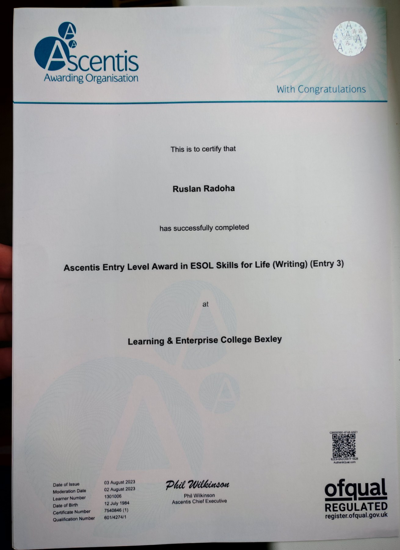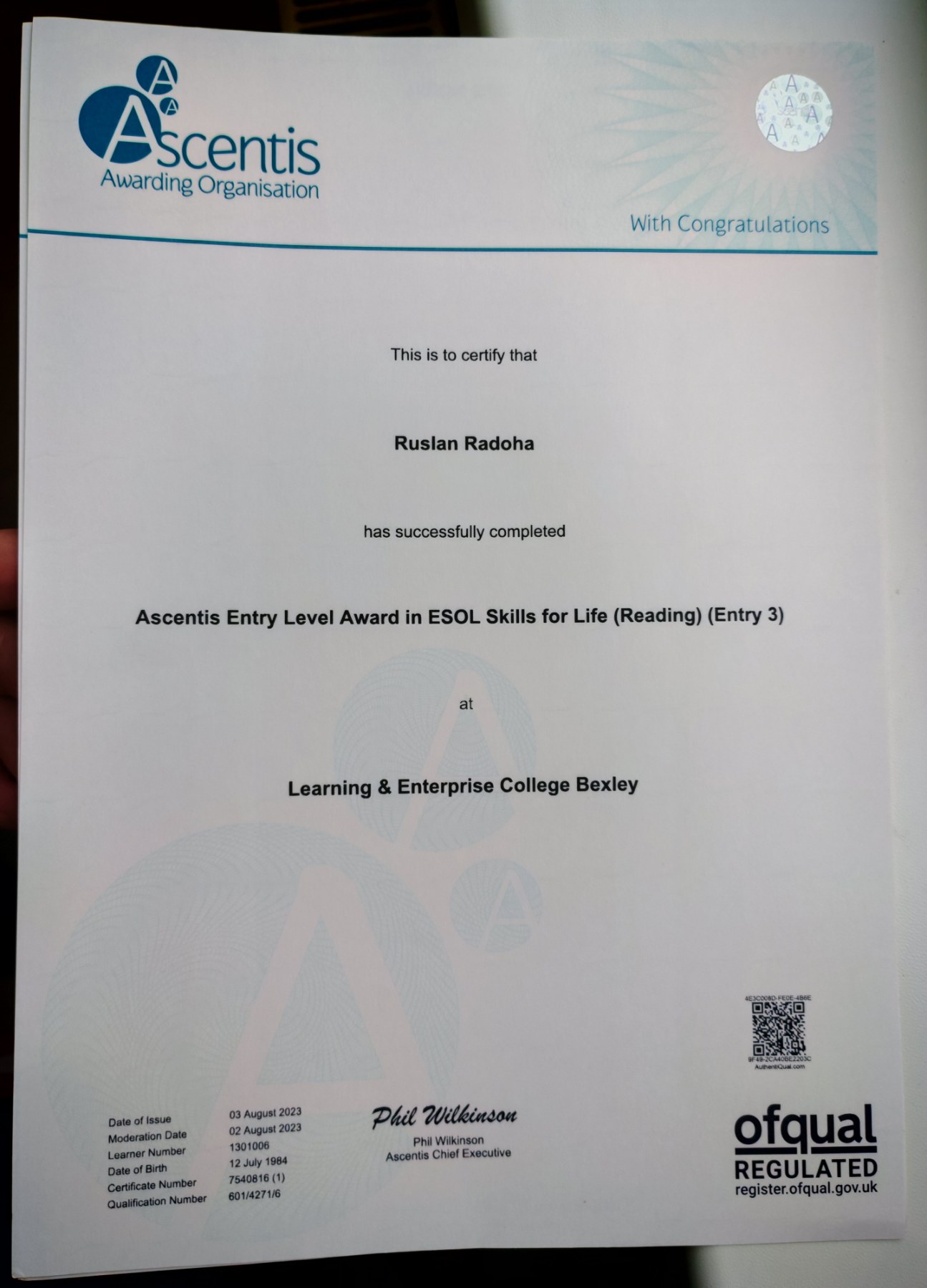 Доц. кафедри Радьога Руслан Володимирович покращував рівень володіння англійською мовою, та проходив курс навчання у Lerning & Enterprise College Bexley, London. Також мав можливість перейняти педагогічний досвід у викладачів Оксфордського університету.