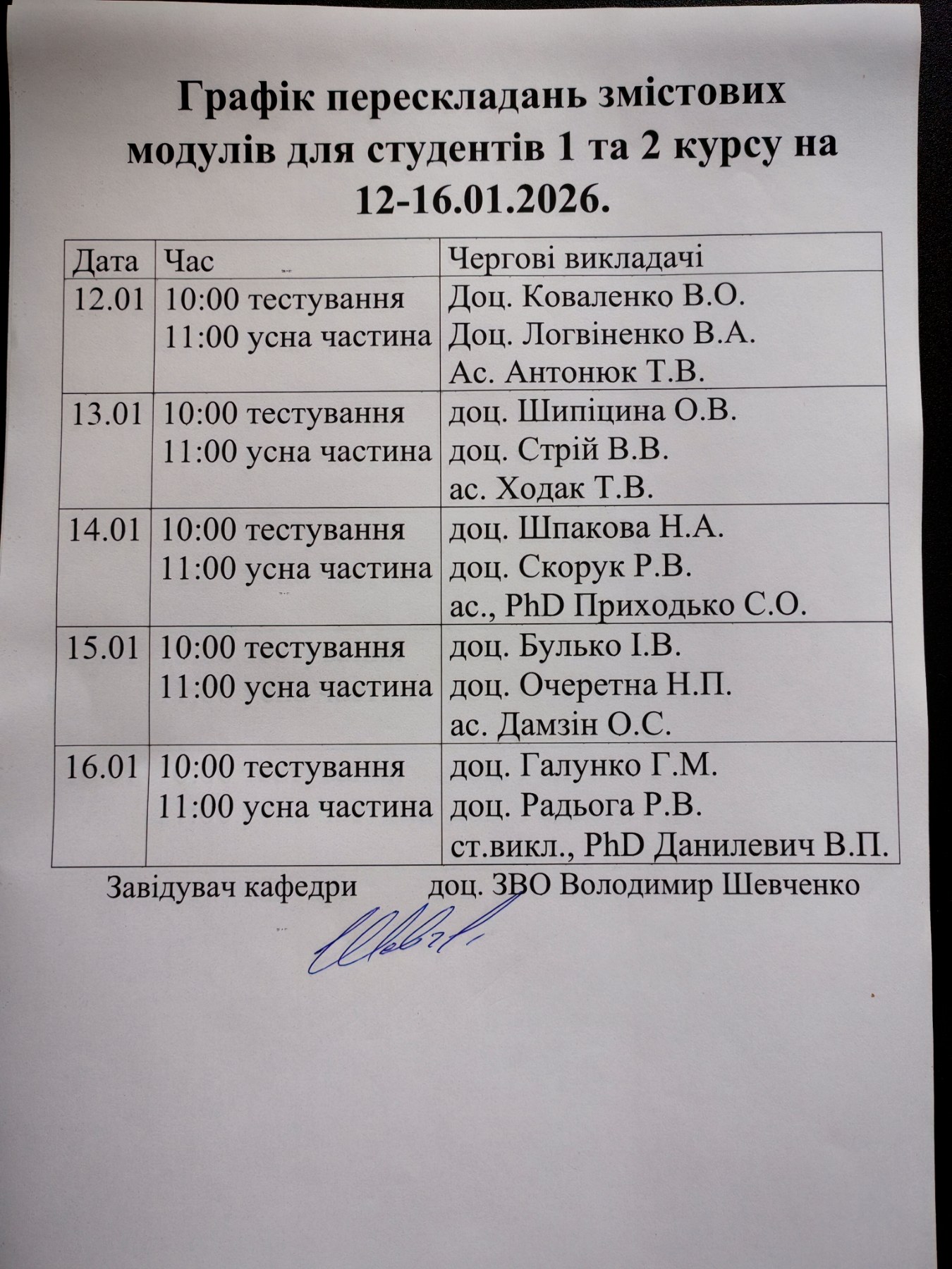 Відпрацювання змістових занять 12.01-16.01.26