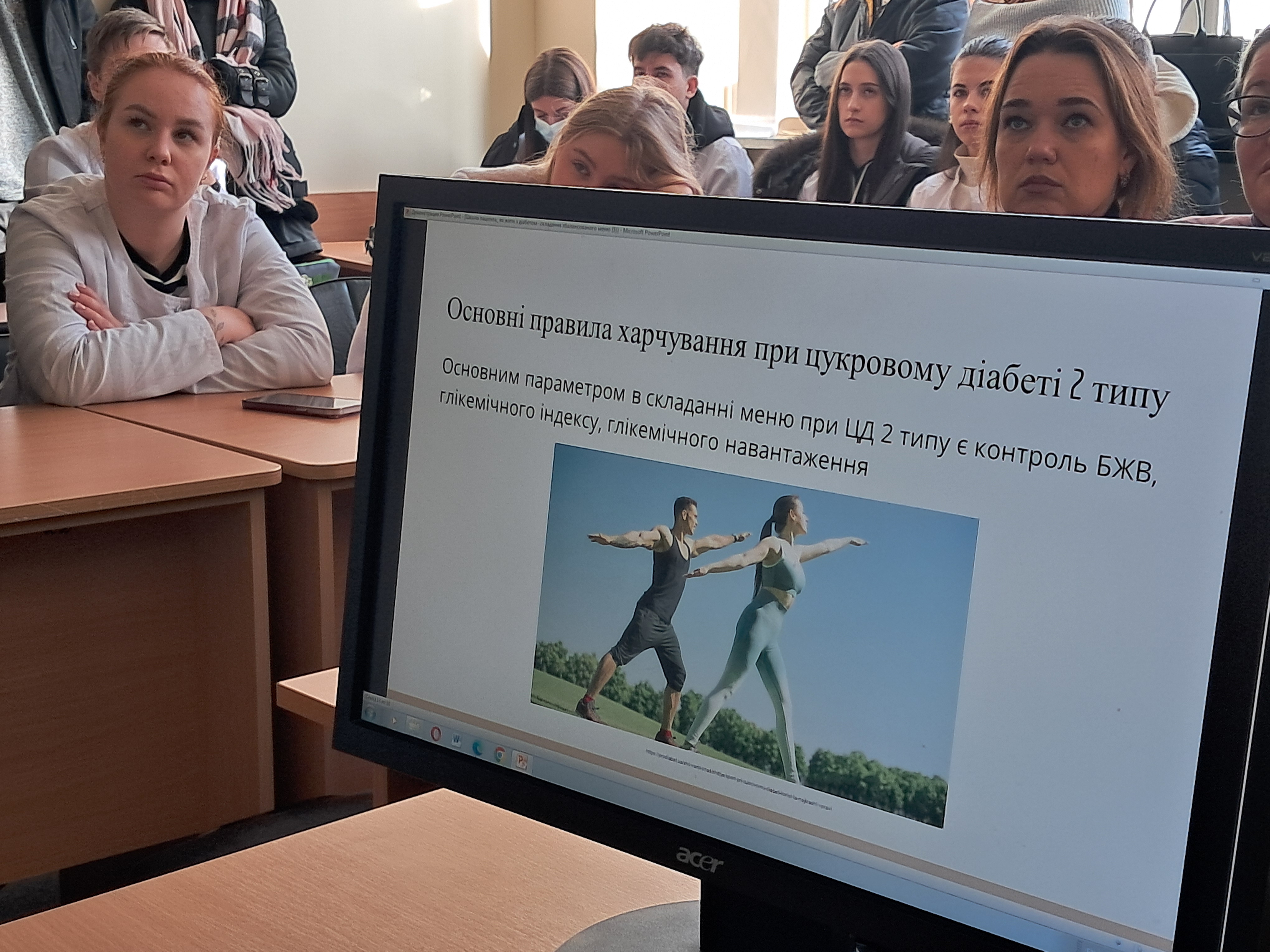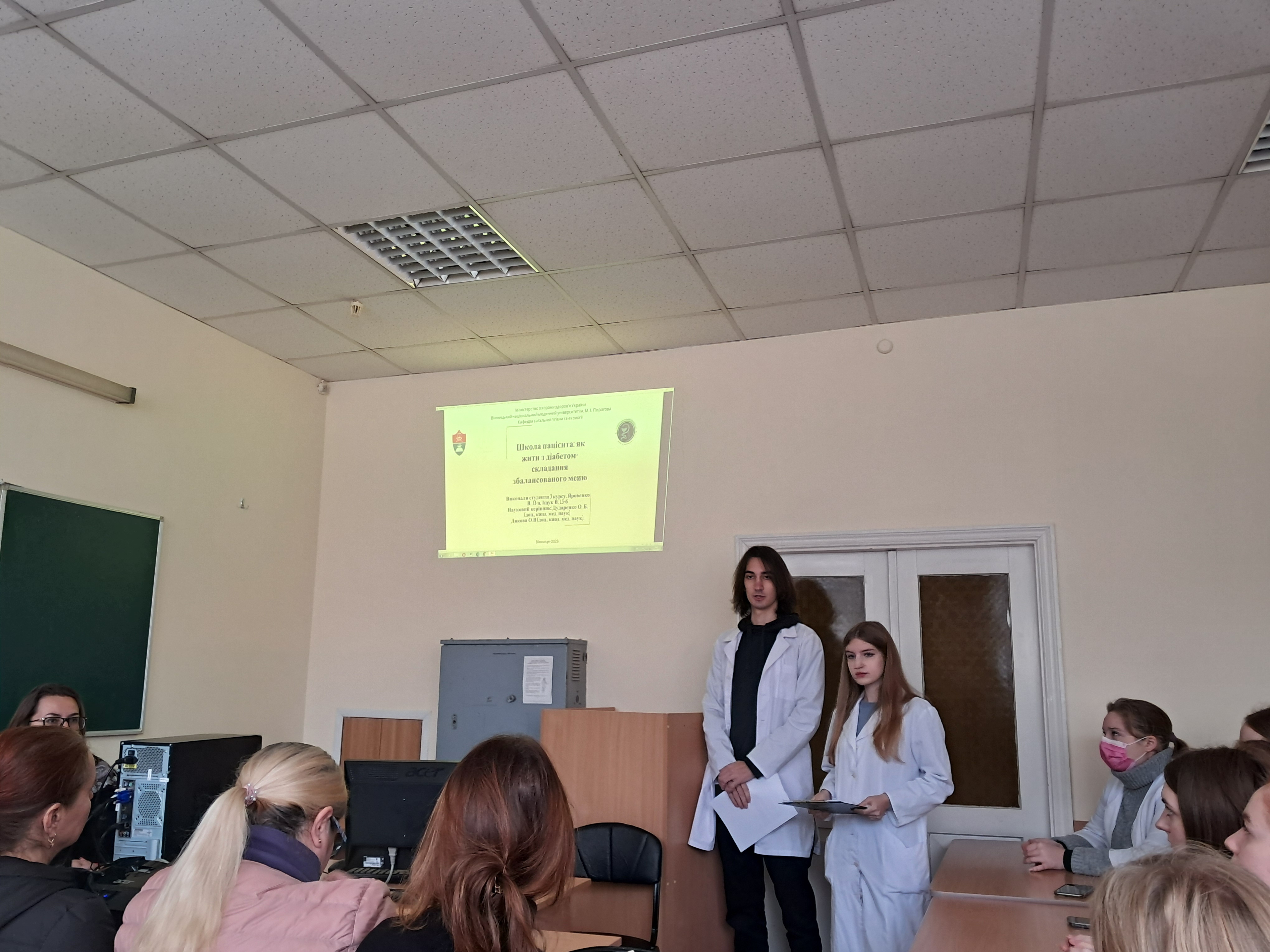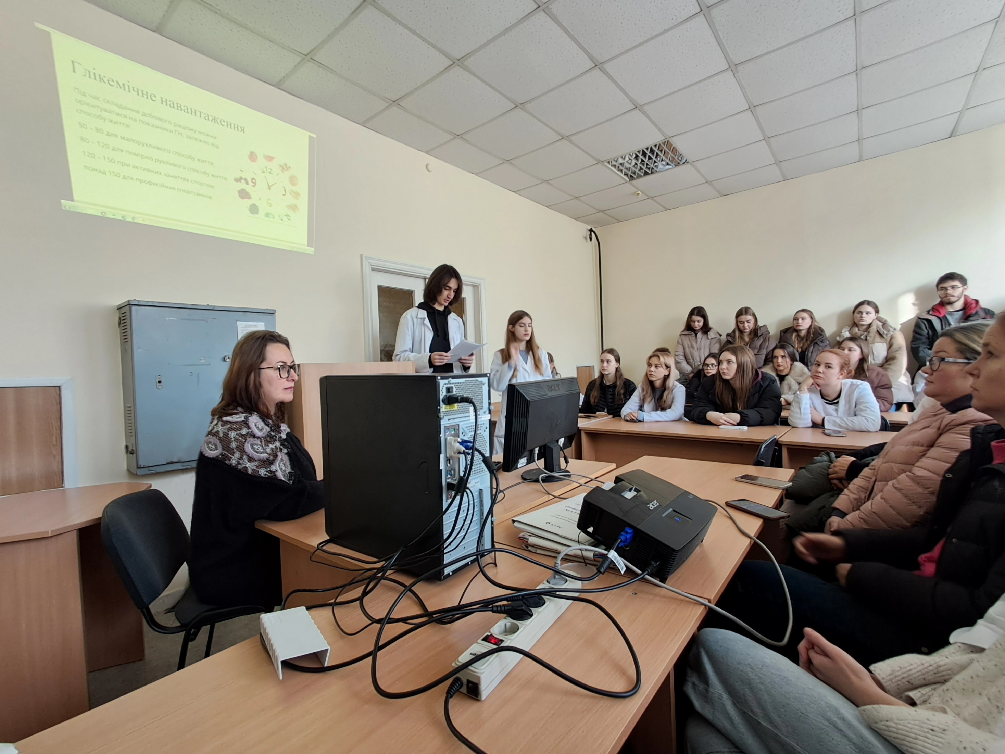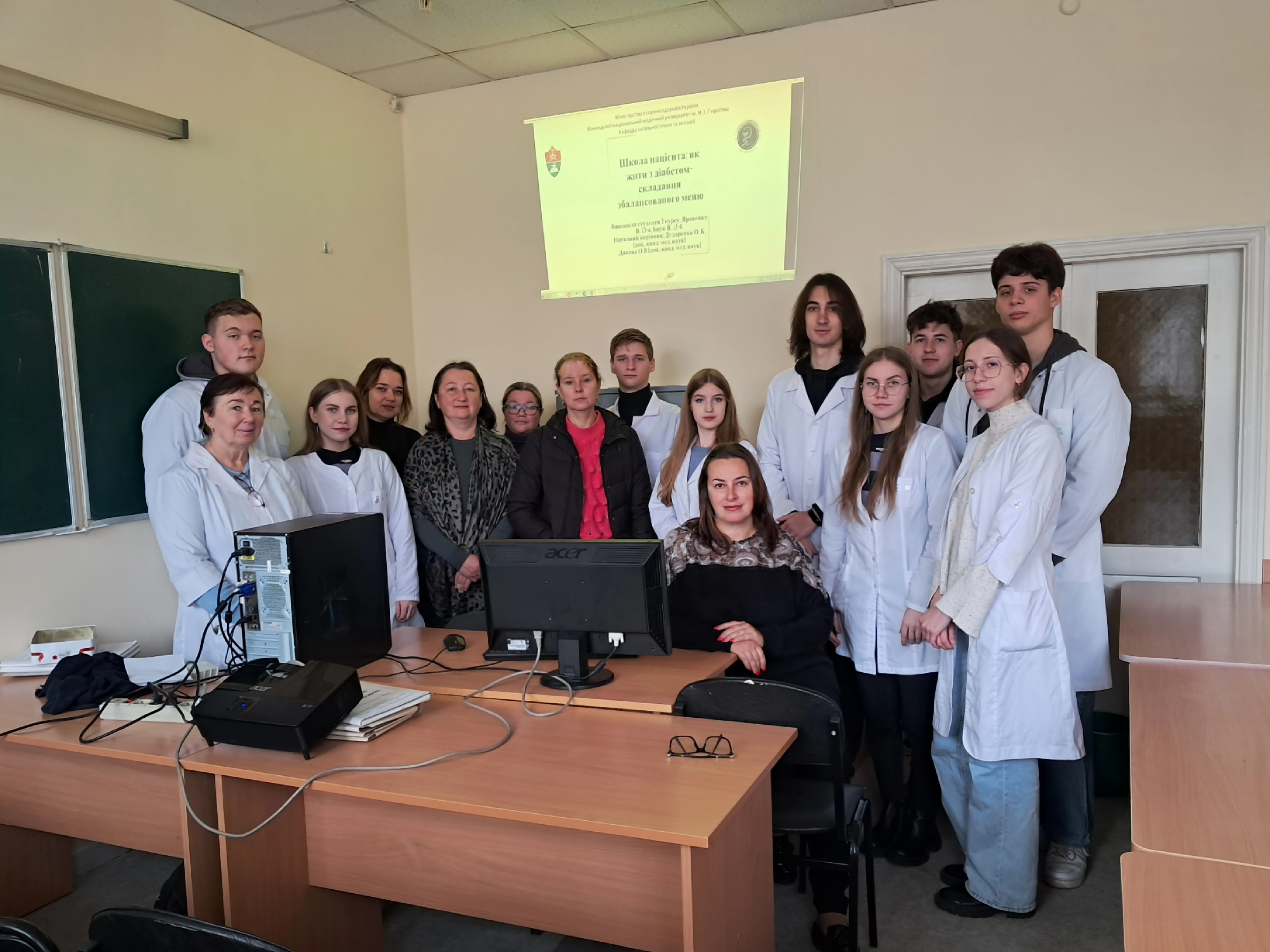 14 листопада, у Всесвітній день боротьби з діабетом, на кафедрі загальної гігієни та екології було проведено інформаційно-просвітницький захід за участі студентів 2 та 3 курсів. Метою зустрічі було підвищення обізнаності щодо методів профілактики, раннього виявлення цукрового діабету, а також особливостям лікувально-дієтичного харчування при захворюванні. Під час заходу студенти ознайомилися з сучасними даними про поширеність захворювання, основними симптомами, принципами здорового харчування та важливістю регулярної фізичної активності. Особливу увагу було приділено профілактиці, ролі контролю маси тіла та складанню меню при цукровому діабеті 2-го типу.