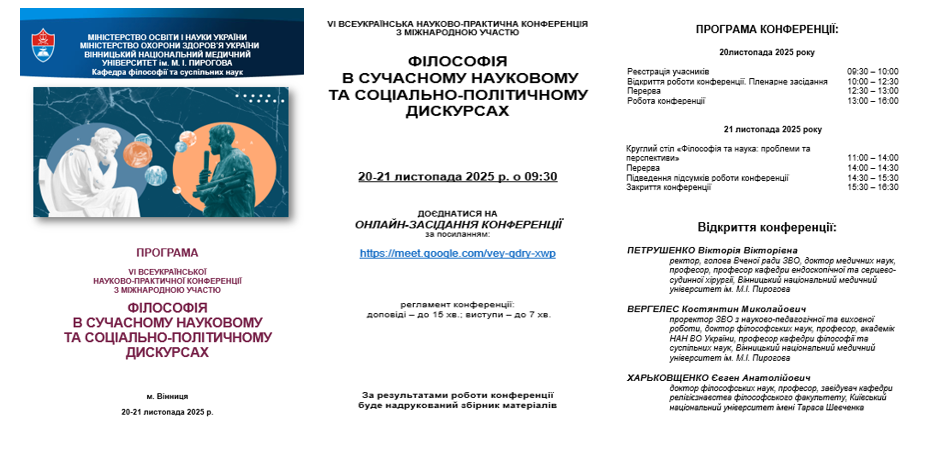Запрошуємо на VІ Всеукраїнську науково-практичну конференцію з міжнародною участю «Філософія в сучасному науковому та соціально-політичному дискурсах» (20-21 листопада 2025 р.).
