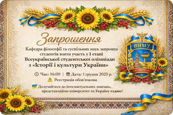 Запрошуємо студентів до участі в І етапі Всеукраїнської студентської олімпіади з «Історії і культури України»