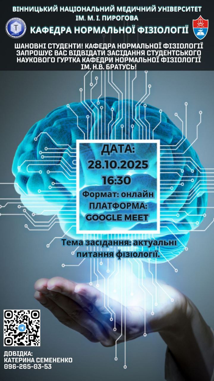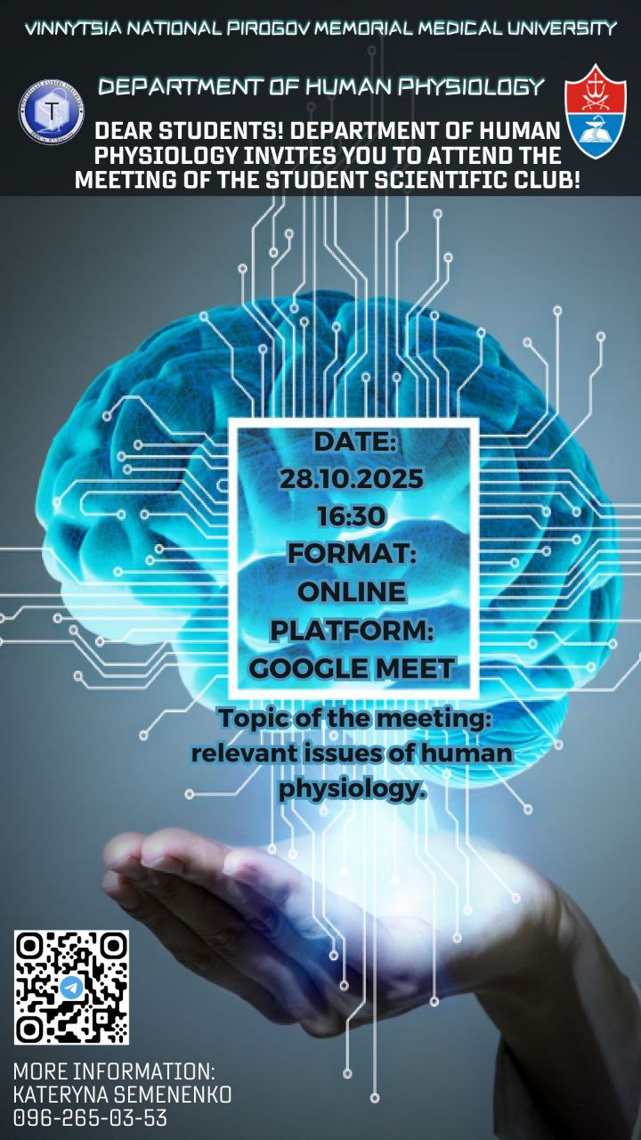 28.10.25р. о 16.30год. відбудеться засідання студентського наукового гуртка з теми "Актуальні питання фізіології" ( https://meet.google.com/daa-reaw-nsj )