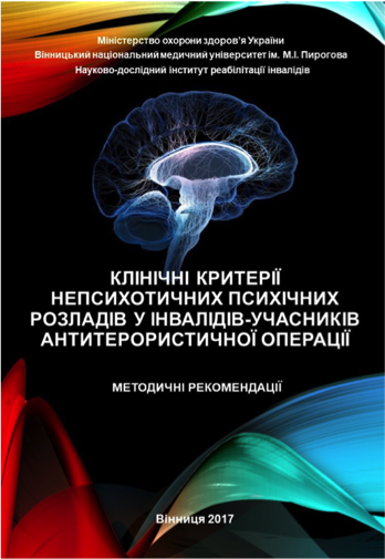 - Рациборинська-Полякова Н.В. та ін. Клінічні критерії непсихотичних психічних розладів у інвалідів-учасників АТО. Методичні рекомендації з грифом МОЗ./ Рациборинська-Полякова Н.В., Семененко К.М., Беляєва Н.М., Яворовенко О.Б., Куриленко І.В./- ВНМУ ім. М.І. Пирогова, НДІРІ, м.Вінниця, ФОП Рогальська І.О. – 2017. – 36с.