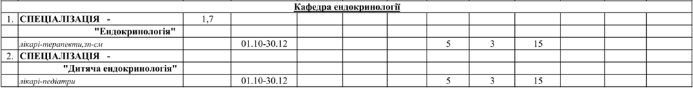 — для здобуття кваліфікації у галузі енддокринології та дитячої ендокринології відповідно до чинних вимог МОЗ України (спеціалізація відповідно чинної номенклатури — "Ендокринологія", "Дитяча ендокринологія").