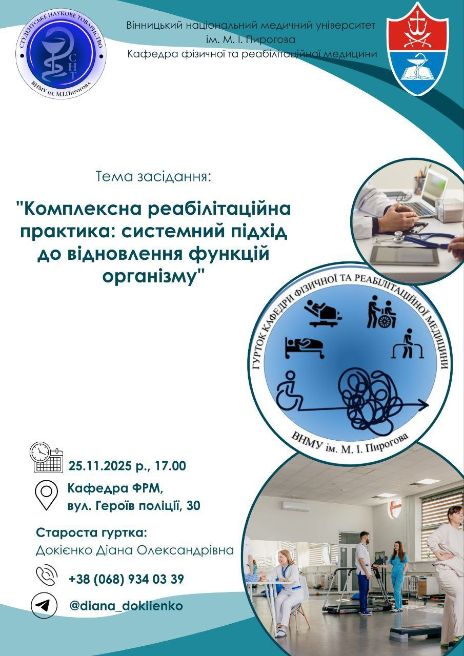На кафедрі фізичної та реабілітаційної медицини відбулося засідання студентського гуртка на тему: «Комплексна реабілітаційна практика: системний підхід до відновлення функцій організму».