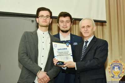 Гуменюк Максим та Хомук Назарій отримують диплом 1го ступеню від ректора ТДМУ. Науковий керівник роботи - Перебетюк А.М.