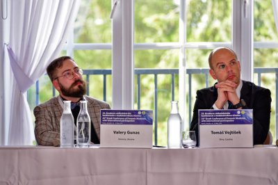 Викладачі кафедри судової медицини (Гунас В.І. та Перебетюк А.М.) ВНМУ з колегами з Туреччини (проф. Мете) та Іспанії (проф. Луна) під час конференції у Братиславі