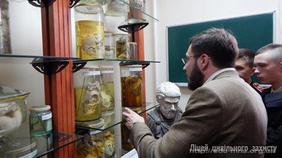 Вихованці другого курсу Ліцею цивільного захисту під час екскурсії у ВНМУ. Лекцію проводить Гунас В.І.