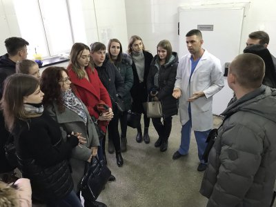 Студенти ІV курсу Вінницького торговельно-економічного інституту КНТЕУ, які навчаються за спеціальністю «Правознавство» під час екскурсії у ВОБСМЕ. Лекцію проводить Плахотнюк І.М.