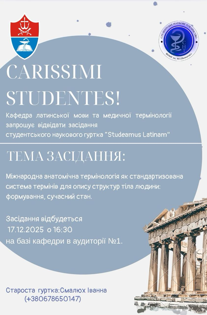 Засідання студентського наукового гуртка відбудеться 17.12.2025