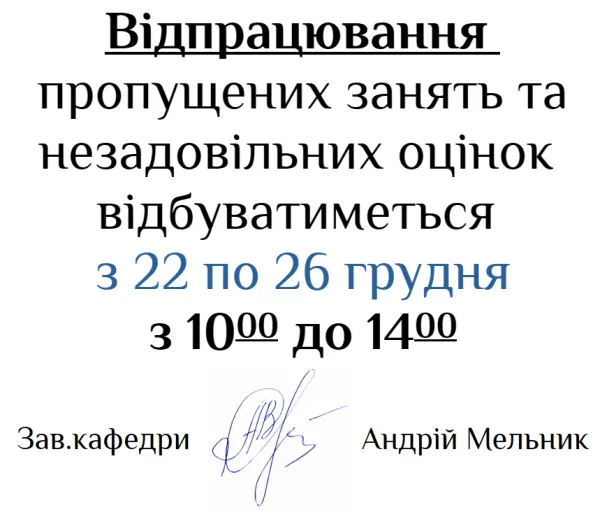 Відпрацювання з 22 по 26 грудня