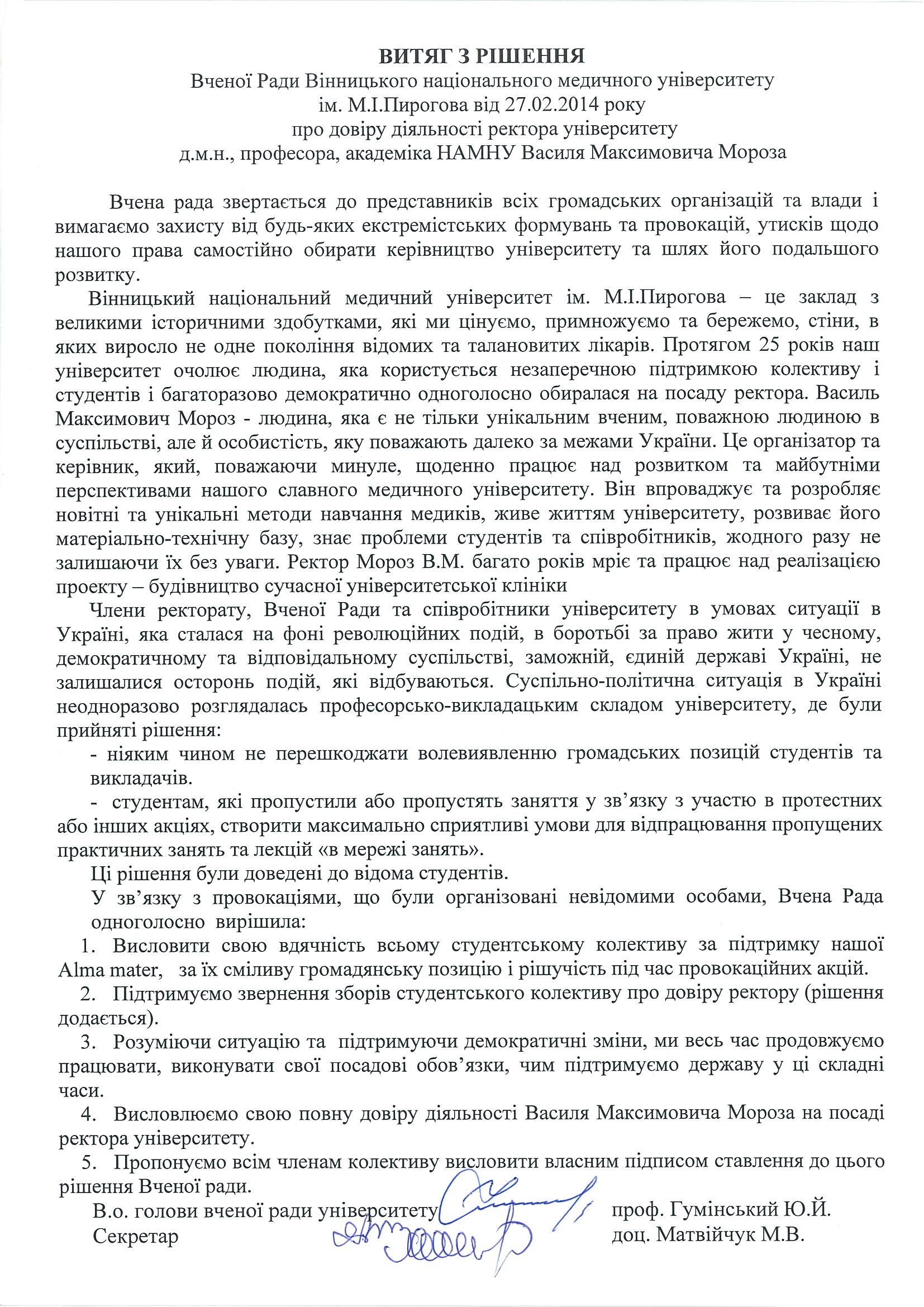Рішення вченої ради ВНМУ ім М.І.Пирогова від 27.02.2014р.