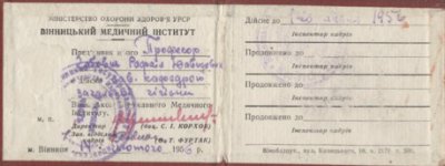 Посвідчення завідувача кафедри загальної гігієни Вінницького медичного інституту Р. Д. Габовича